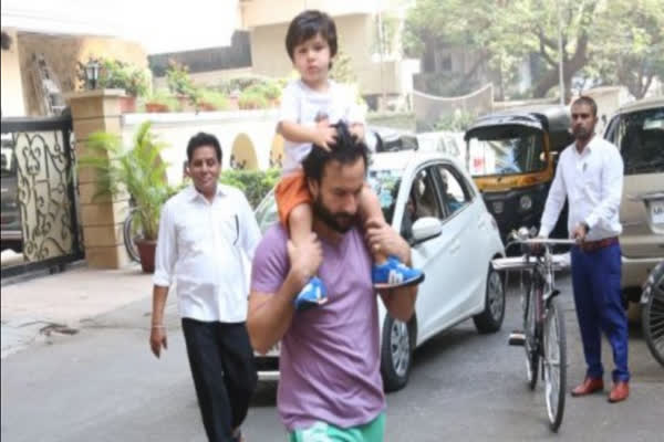 पापा सैफ के कंधे की सवारी का लुत्फ उठाते दिखे तैमूर