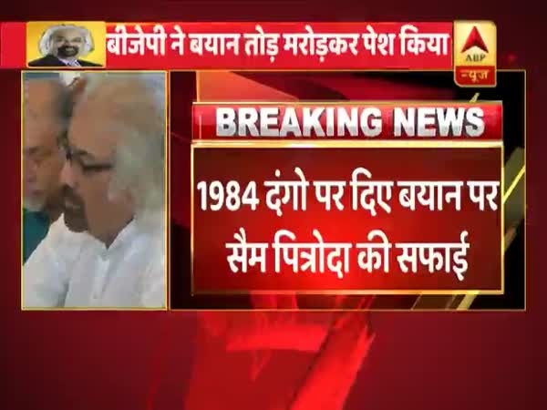 1984 के सिख दंगों पर जो हुआ सो हुआ कहने वाले कांग्रेस नेता सैम पित्रोदी ने सफाई दी है, सैम ने कहा है मेरे बयान को बीजेपी तोड़ मरोड़ कर पेश कर रही है., सैम ने ट्वीट कर सफाई दी है.