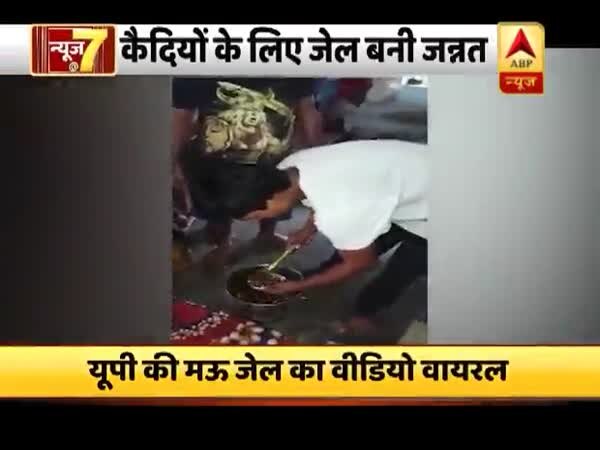 ये ऐश यूपी के मऊ जेल में हो रही है, वीडियो बना रहा कैदी दावा कर रहा है कि जेलर पैसों की वसूली करके जेल में अवैध कामों की इजाजत देता है.