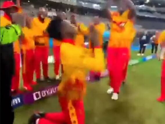 जांच में क्या आया सामने?वायरल वीडियो को लेकर किया जा रहा यह दावा कितना सच है? इसकी जांच करने के लिए वायरल वीडियो के कीफ्रेम को रिवर्स सर्च करने पर एक ट्वीट मिला, जो 28 अक्टूबर, 2022 को जिम्बाब्वे क्रिकेट टीम की ओर से शेयर किया गया था. ऐसा ही वीडियो क्रिकेट वैल्यू (Cricket Value) पर भी मिला. यह दोनों वीडियो वायरल वीडियो से मिलते-जुलते हैं. इन वीडियो में खिलाड़ी पीले रंग की जिम्बाब्वे क्रिकेट टीम की ड्रेस पहने ग्राउंड पर नाचते और जश्न मनाते दिख रहे हैं. हालांकि, दोनों वीडियो में वायरल वीडियो की तरह 'भारत का बच्चा-बच्चा जय श्री राम बोलेगा' गाना नहीं बज रहा है. इसका मतलब है कि वायरल वीडियो में गाने को अलग से जोड़ा गया है.
