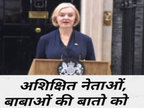 समीर सैफी नाम के एक ट्विटर यूजर ने अपने ट्वीट में एक ग्राफिक शेयर किया. इस ग्राफिक में ब्रिटेन की पूर्व पीएम लिज ट्रस की तस्वीर लगी हुई है और लिखा हुआ है कि अशिक्षित नेताओं, बाबाओं की बातों को ध्यान से सुनने वाला देश भारत है. ग्राफिक में नीचे ट्रस का नाम भी लिखा हुआ है और ऊपर की तरफ बोलता हिंदुस्तान का लोगो भी लगा हुआ है. इस तस्वीर कैप्शन में यूजर ने लिखा है कि ये कटाक्ष है या तारीफ?