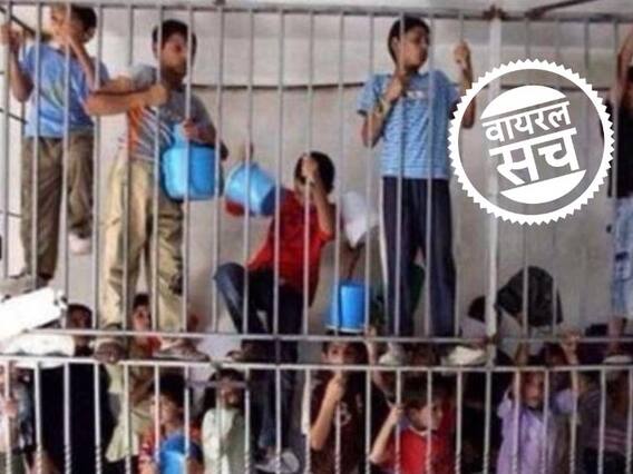 कैसी तस्वीर हो रही वायरल?दरअसल, जो तस्वीर वायरल हो रही है. उसमें दावा किया जा रहा है कि दर्जन भर से ज्यादा फिलिस्तीनी बच्चे एक लोहे की सलाखों के पीछे खड़े हुए हैं. उनके हाथ में नीले रंग के प्लास्टिक मग और छोटी बाल्टियां हैं. उनके चेहरे देखकर लग रहा कि वो भूखे-प्यासे और लाचार हैं. इस तस्वीर के टेक्स्ट में लिखा है कि इजरायली जेल में फिलिस्तीनी बच्चे. इसको लेकर दावा किया जा रहा है कई ये फिलिस्तीनी बच्चे एक जेल में बंद हैं, जोकि इजरायल में है.