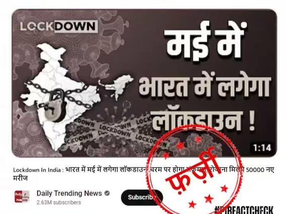 हम सभी ने कोरोना के समय की भयावहता महसूस की है. लॉकडाउन के समय को याद कर आज भी हम और आप सिहर उठते हैं. ऐसे में अगर आपके सामने यह दावा किया जाए कि मई से पूरे देश में एक बार फिर से संपूर्ण लॉकडाउन लगने जा रहा है, तो आपको कैसा महसूस होगा? दरअसल, 'Daily Trending News' नाम के एक यूट्यूब चैनल ने अपने एक वीडियो में दावा किया है कि कोरोना संक्रमण के बढ़ने के कारण केंद्र सरकार एक बार फिर से अगले महीने यानी मई से पूरे देश में लॉकडाउन लगा सकती है.