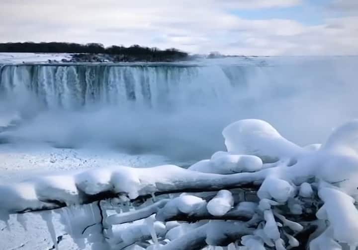 ठंड का कहर ऐसा है कि अमेरिका-कनाडा के बॉर्डर पर स्थित नियाग्रा फॉल्स जम गया है.