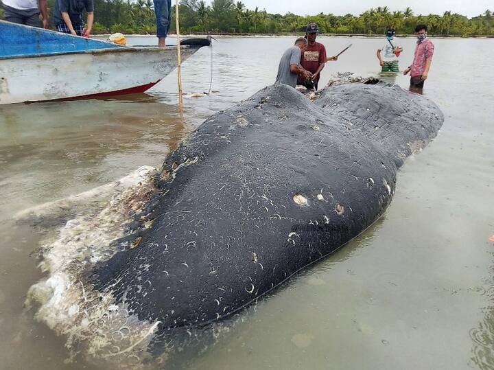 हृदय विदारक तस्वीरें: समंदर किनारे मृत मिली स्पर्म व्हेल के पेट से निकला छह किलो प्लास्टिक, 115 कप और 25 बैग
